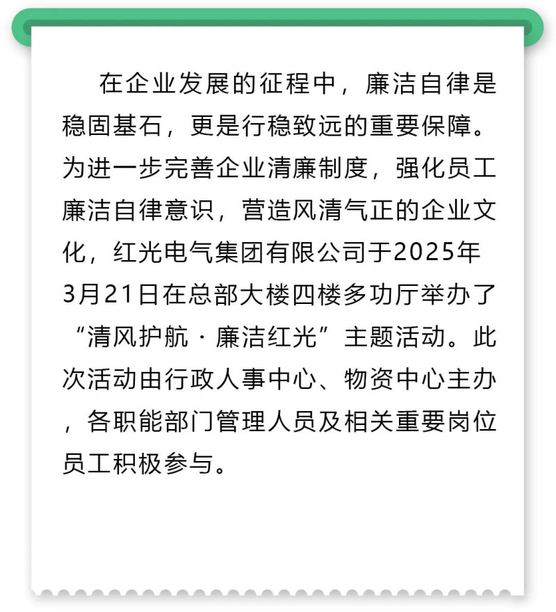 2025年3月 “清风护航・廉洁红光“,开启企业廉洁文化建设新篇章!