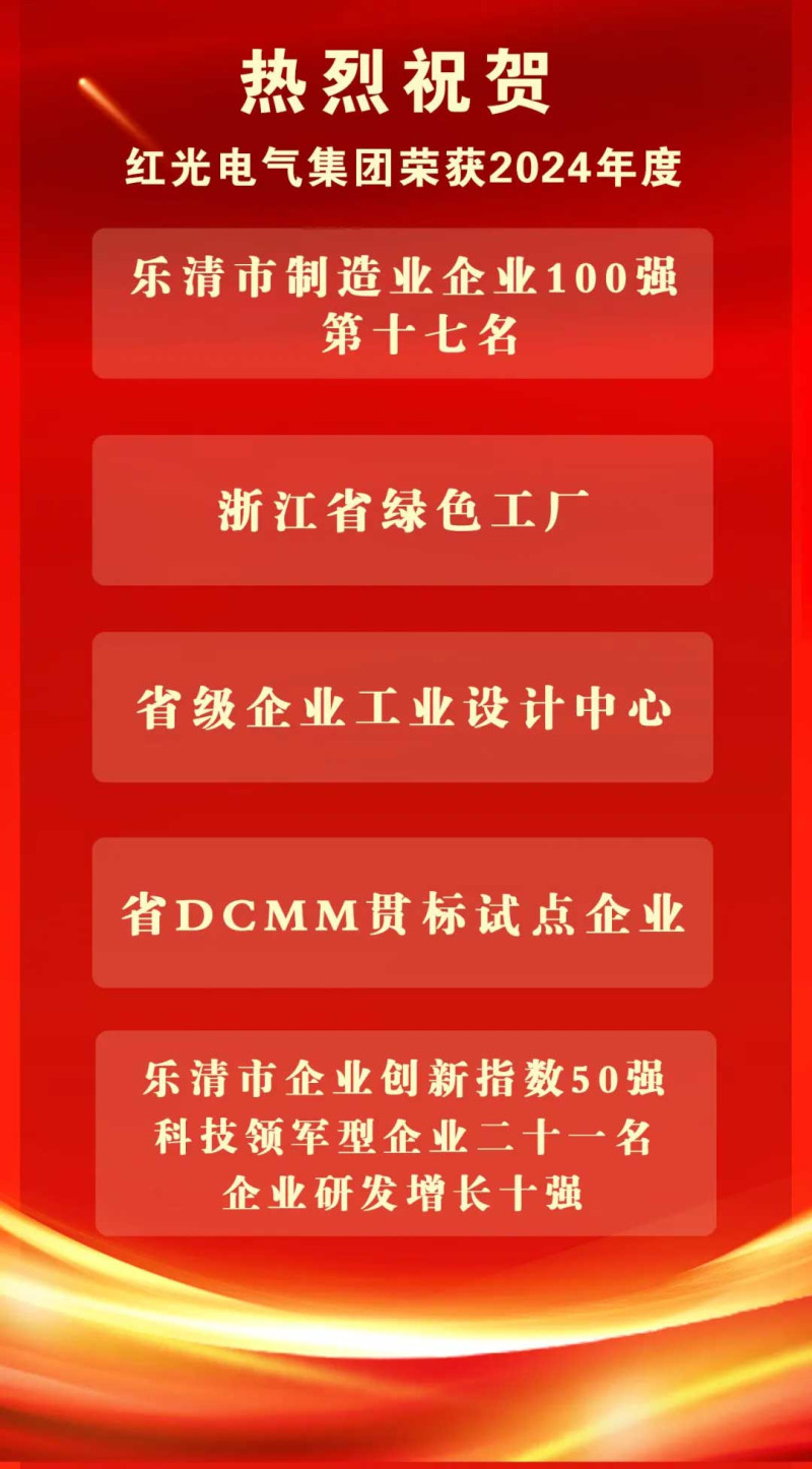 2025年2月 喜讯丨热烈祝贺红光电气集团荣登乐清市高质量发展各项榜单!
